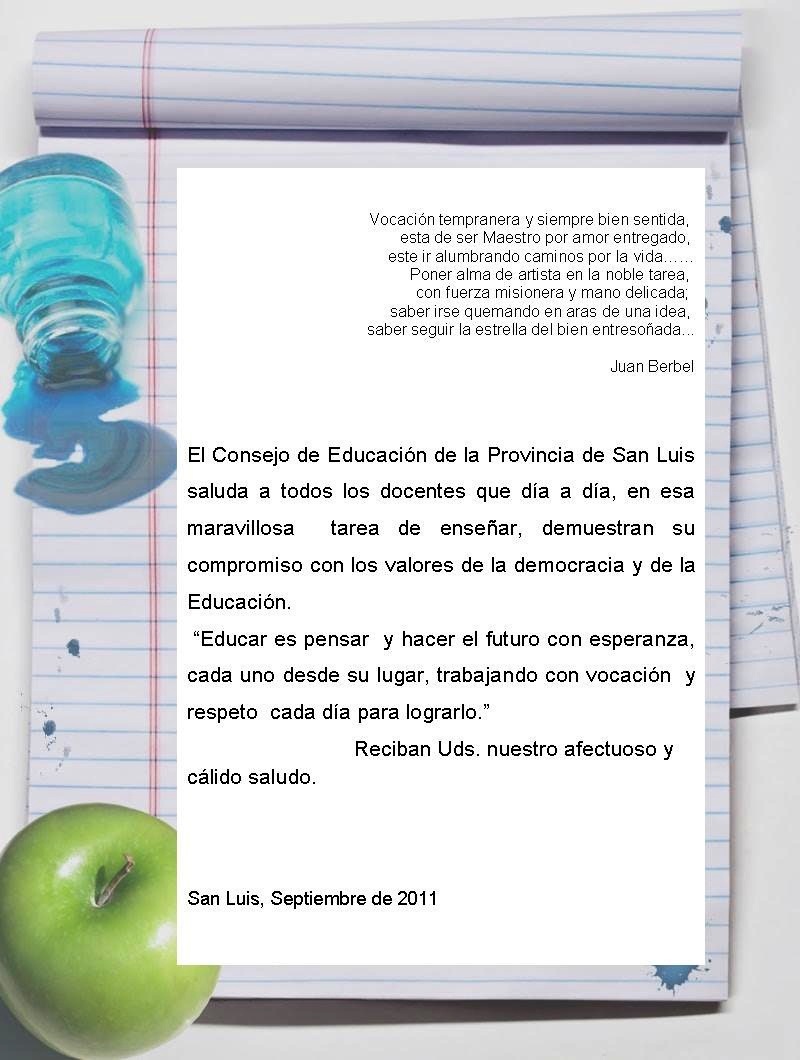 El Consejo de Educación de la Provincia saluda a los Maestros en su día